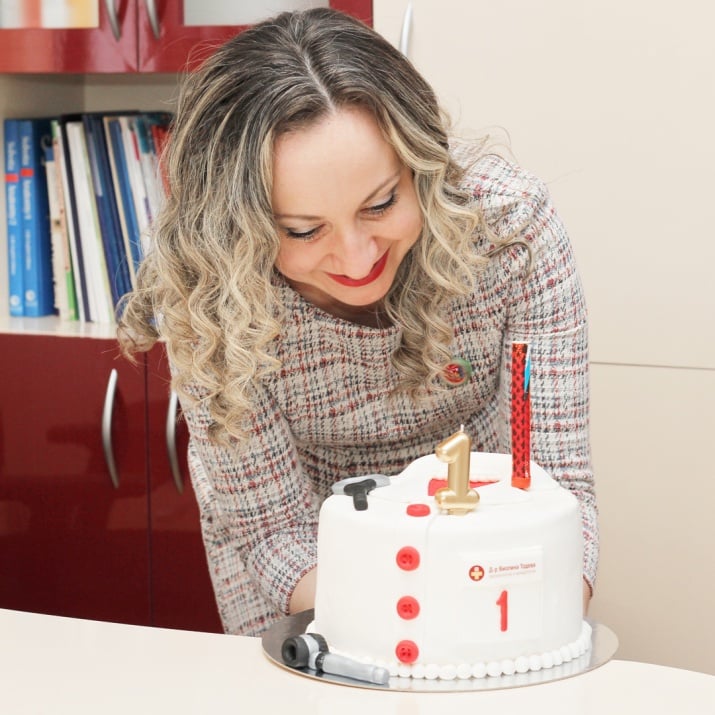 тествено подобен повод не може да мине без няколко думи на вълнение, с които искам най-вече да благодаря на хората до мен. Защото е най-добре, когато по пътя си не вървиш сам. Радвам се, че за една година до себе си имам хора, с които сформирахме чудесен екип. Прекрасно е да имам колеги, на които мога да разчитам!Разбира се искам да изкажа своите огромни благодарности и на Вас - моите пациенти. Благодаря за вярата в мен! За това, че ми доверявате най-ценното си - здравето. Удовлетворена и щастлива съм, когато мога да помагам!