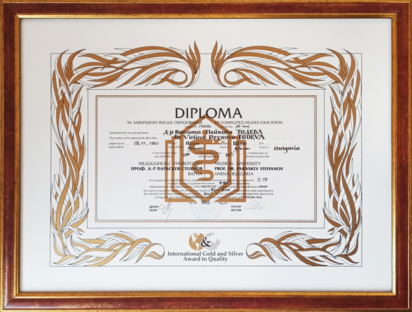 Диплом за завършено висше образование, квалификационна степен МАГИСТЪР и професионална квалификация ЛЕКАР
