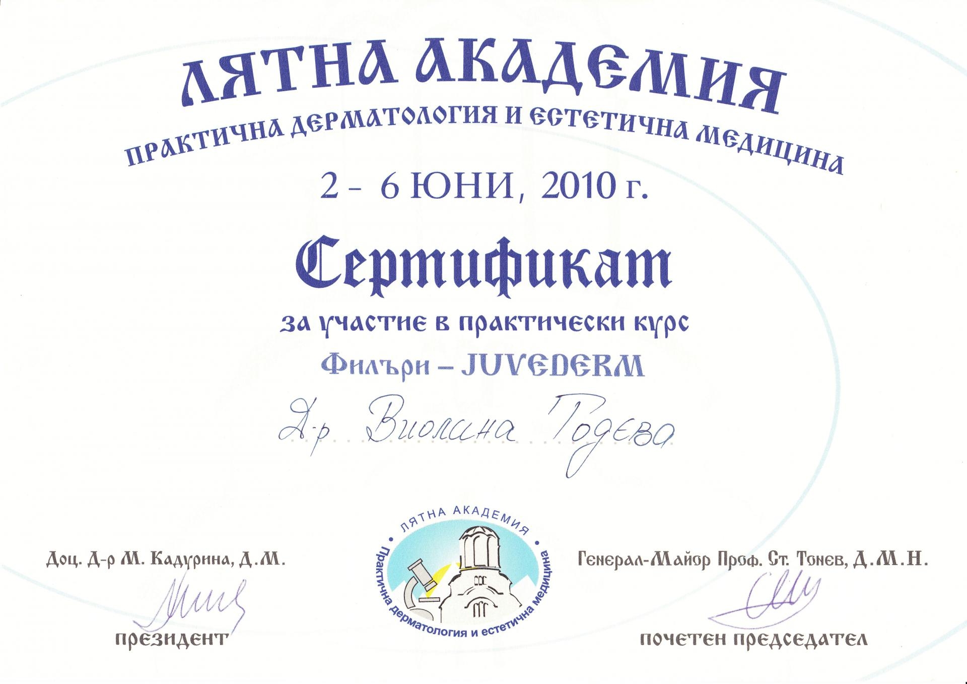 Сертификат филъри Юни 2010 г.