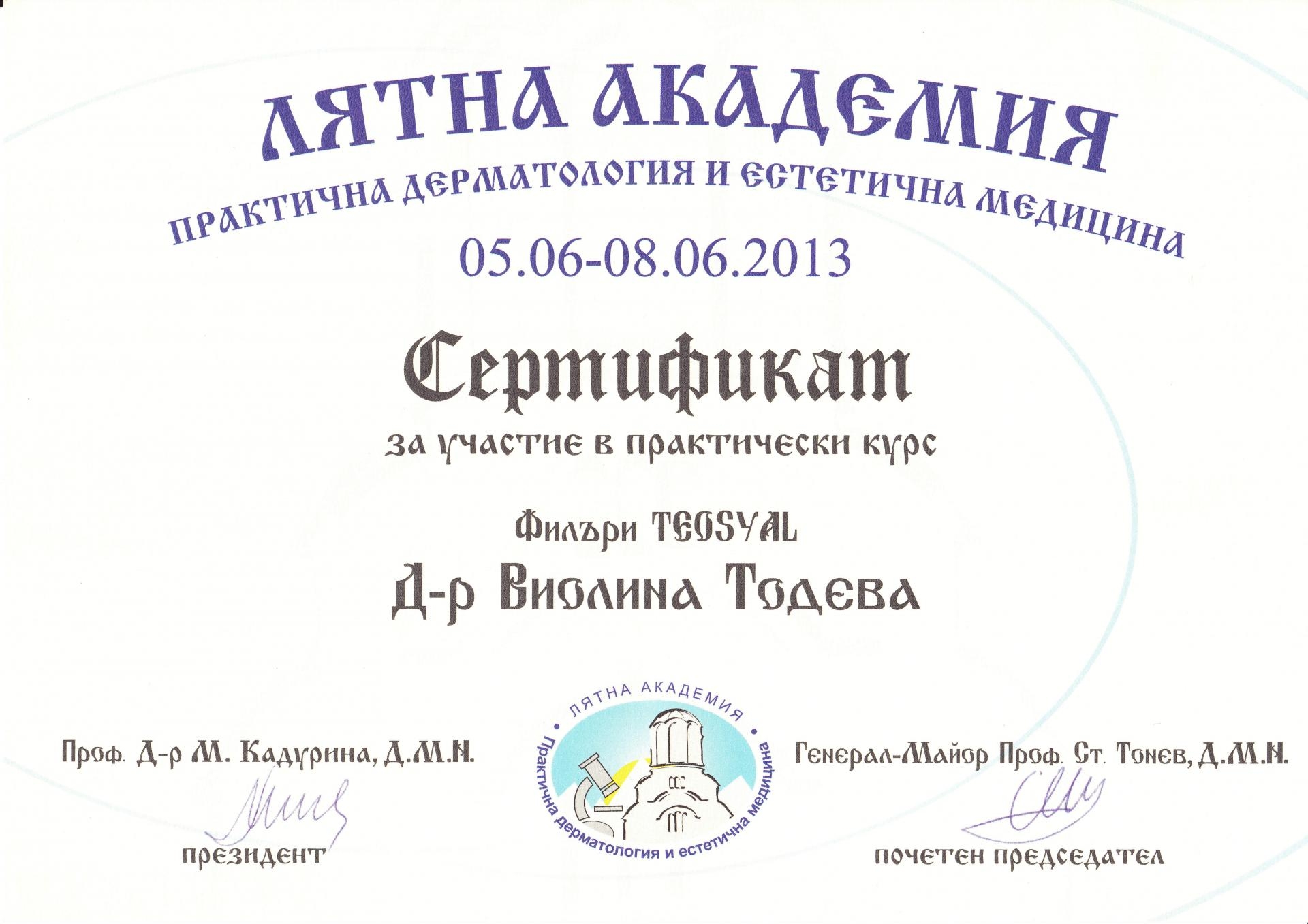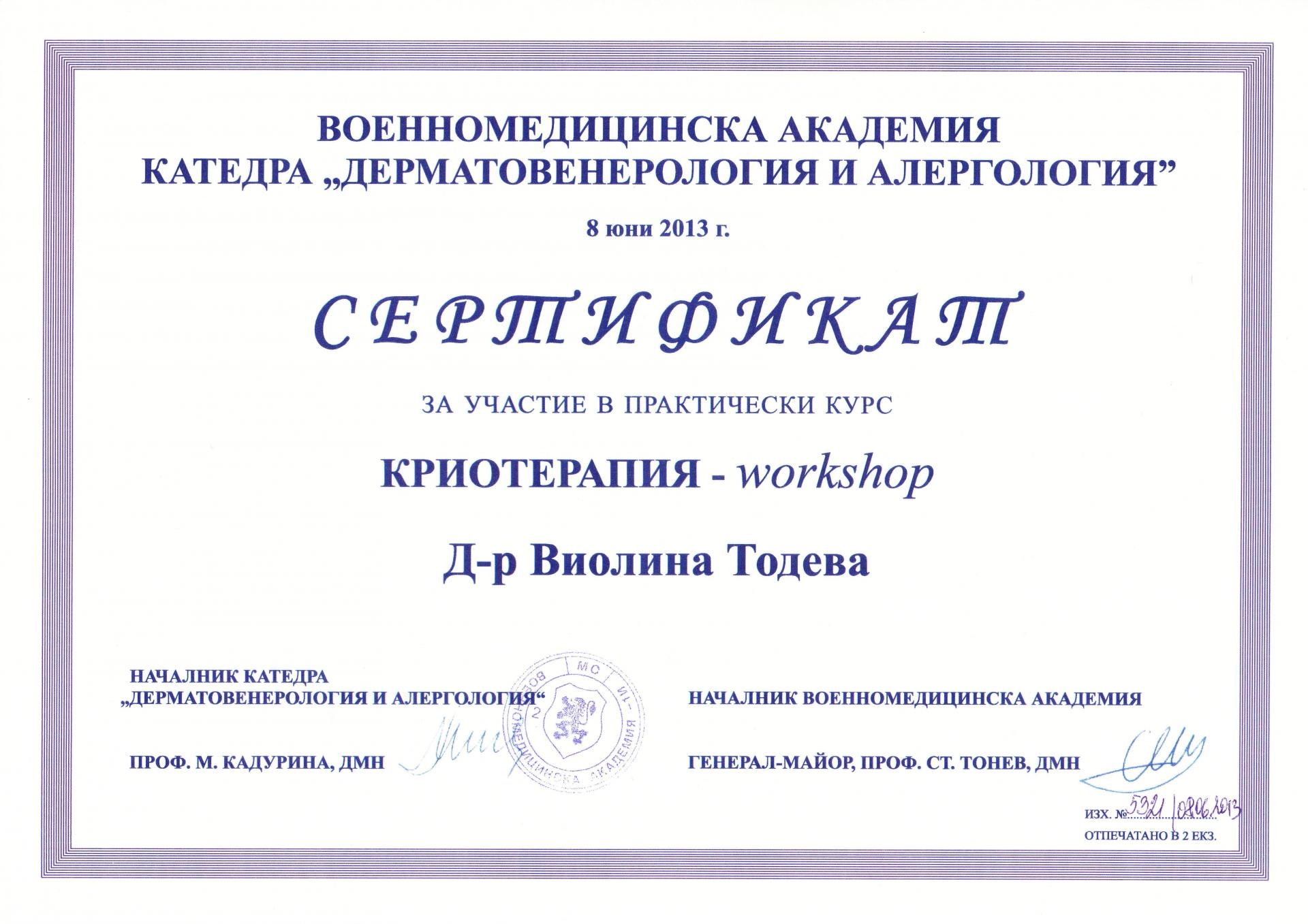 Сертификат криотерапия юни 2013 г.