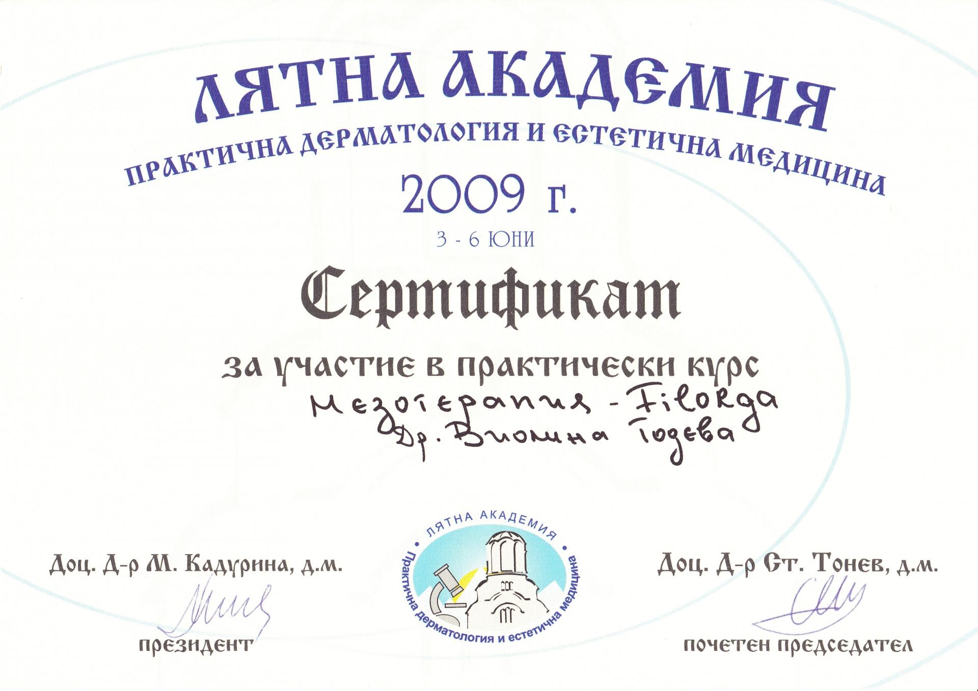Сертификат мезотерапия Юни 2009 г.