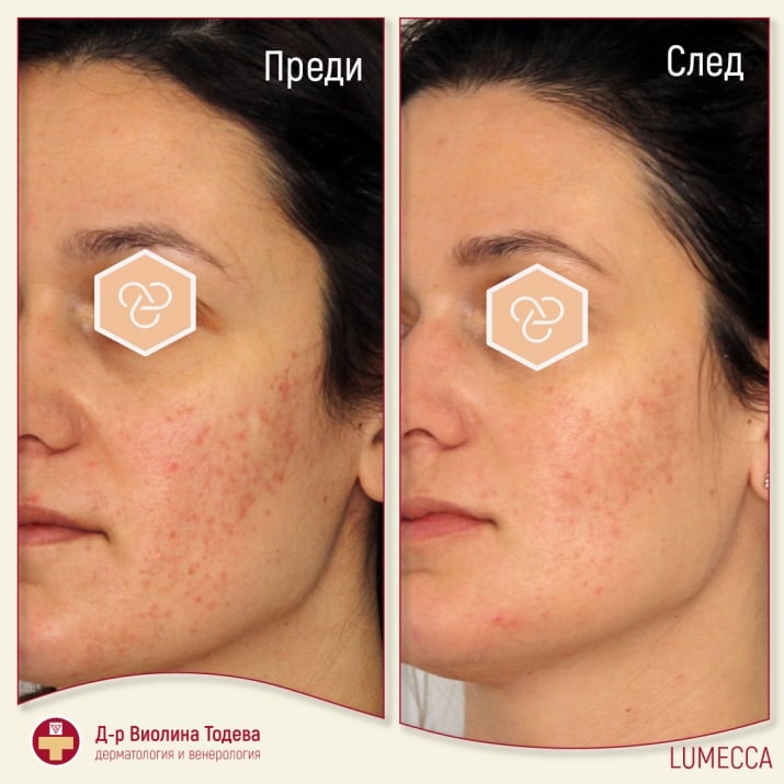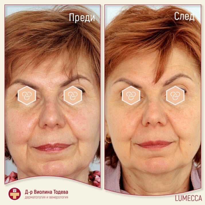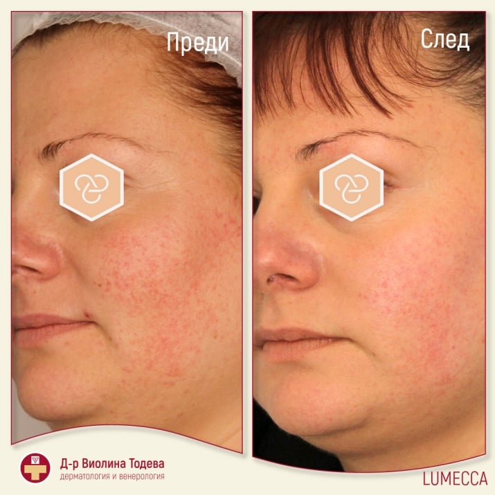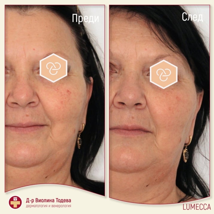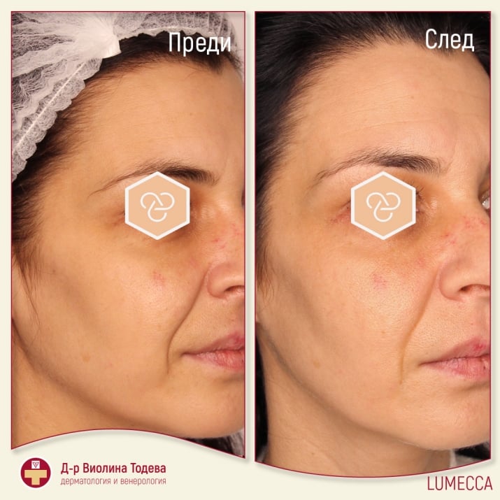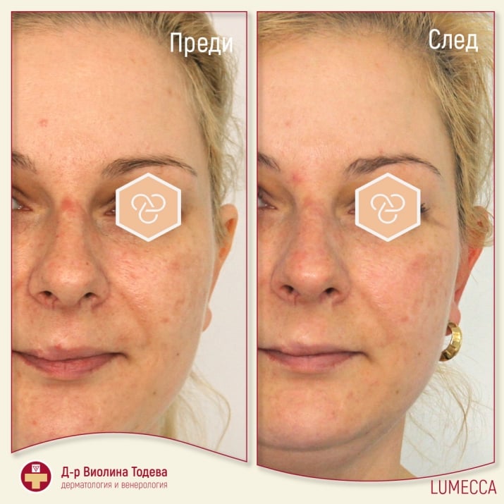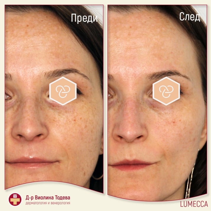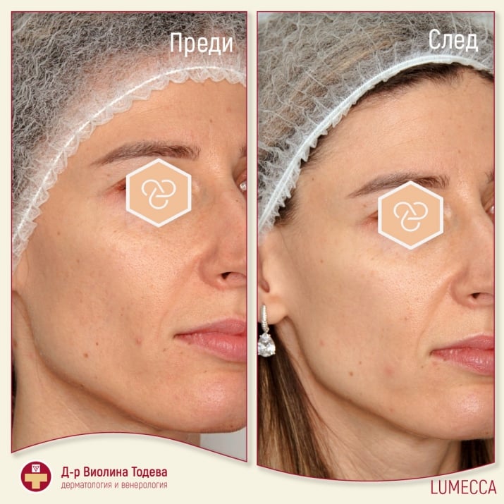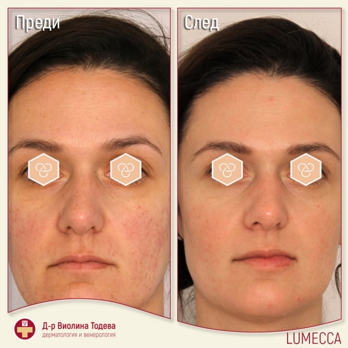 Само след 1-3 процедури Lumecca подобрява вида на кожата. Фотоподмладяването включва: